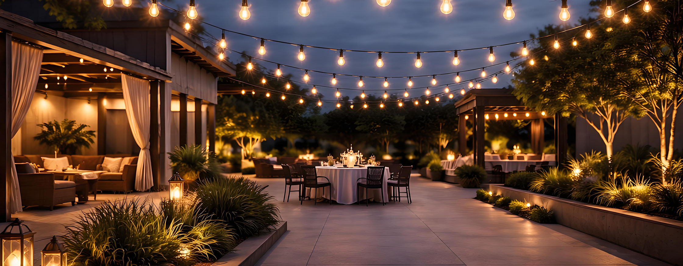 Outdoor string light solutions with customizable lengths, sockets and cable types.